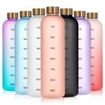1L Motivational Water Bottle 32oz Reusable Plastic Drinking Bottle with Time Marker Leakproof Fashion Style Bottle for Travel